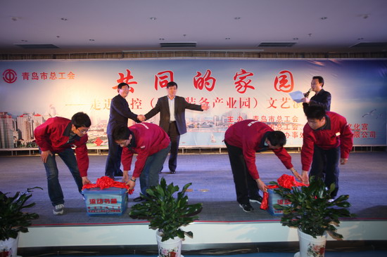 在演出期間,青島市總工會的領(lǐng)導(dǎo)向軟控員工贈送了書箱。據(jù)了解,青島總工會開展的以提高新市民整體素質(zhì)為主要內(nèi)容的“共同的家園”主題系列活動,已連續(xù)五年開展了“送演出、送書箱、送講座、送電影、送活動”為主要內(nèi)容的“五送”活動,走進(jìn)廠礦企業(yè)、建筑工地,慰問新市民10余萬人,極大地豐富和充實(shí)新市民的精神文化生活。